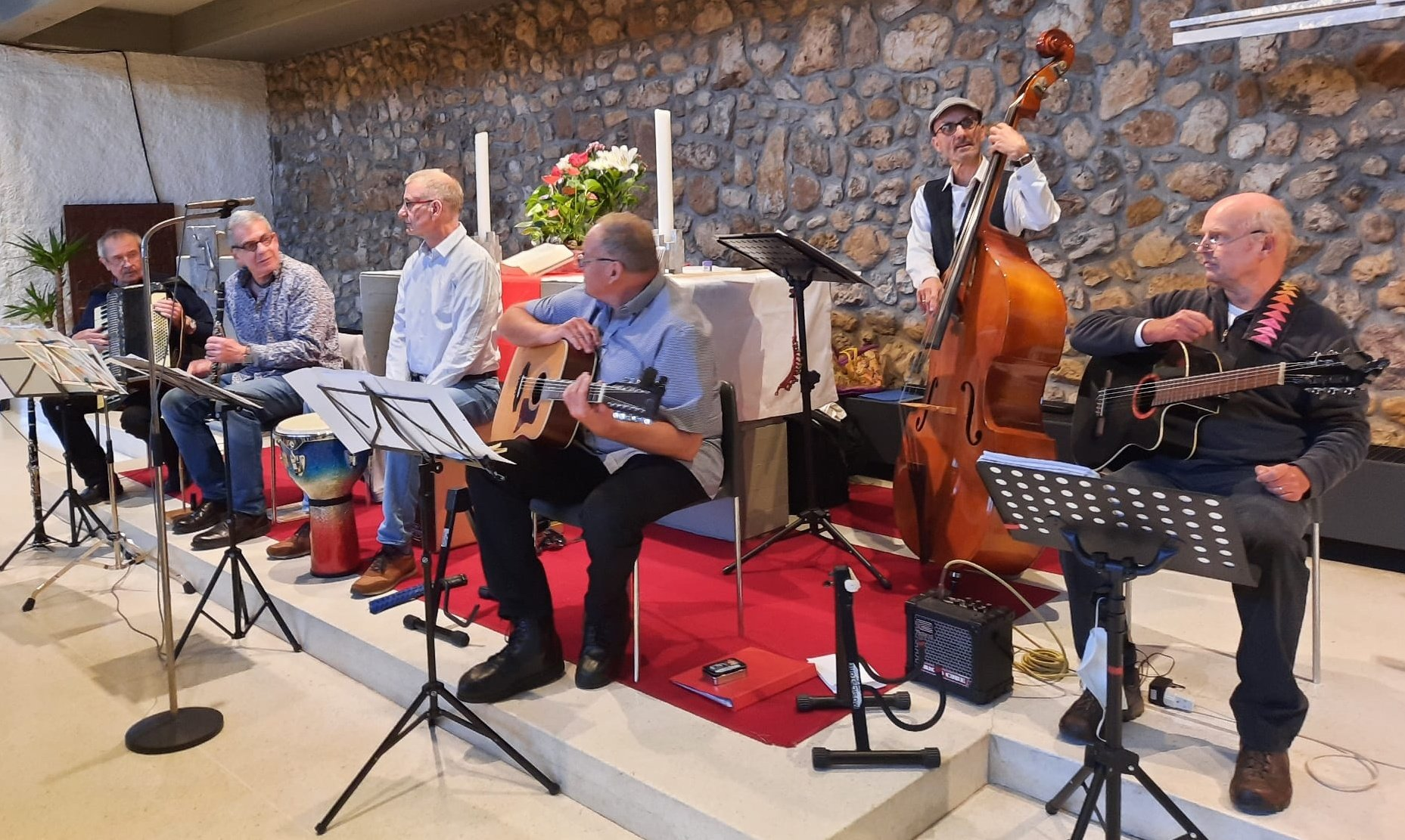 Am Ende waren alle überaus zufrieden: die Zuhörer hatten ein vielseitiges, interessant dargebotenes Programm konzentriert genießen können, das Ensemble hatte sein in der Corona-Zeit entstandenes neues Repertoire einem hungrigen Publikum präsentieren dürfen, der Kirchenraum, der mit seiner Atmosphäre und Akustik wie gemacht ist auch für solche Veranstaltungen, bot einen idealen Ort und Hintergrund für das Konzert.
